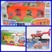 edukacyjne zabawki ( autobus, helikopter, ciuchcia )